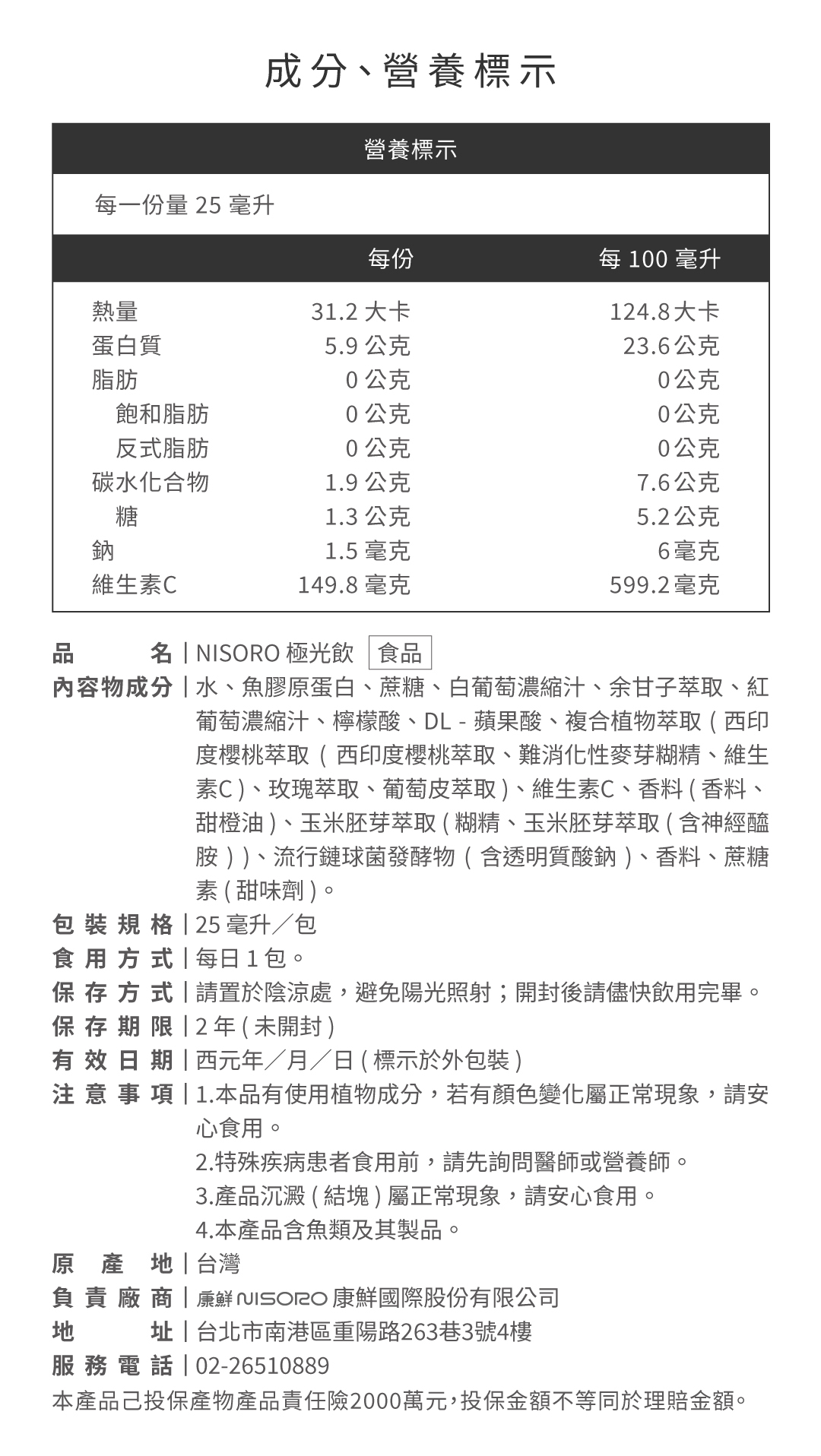 NISORO 極光飲以植萃亮膚複方為配方核心,包含葡萄皮、玫瑰、余甘子、西印度櫻桃與高單位維生素 C,搭配膠原蛋白與玻尿酸等成分,協助肌膚維持健康光澤與保水彈性。但因個人體質與作息、飲食等因素影響,實際變化程度會因人而異,建議持續補充 6–8 週觀察整體膚況變化。