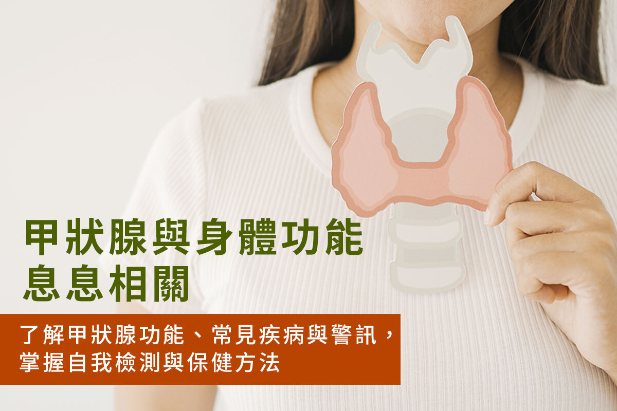 你知道嗎?身體的「代謝控制中心」其實就藏在喉嚨前方蝴蝶形的小小腺體——甲狀腺。別看它體積不大,甲狀腺分泌的荷爾蒙卻影響全身多項生理機能,一旦甲狀腺功能出現異常,往往會牽一髮而動全身,對生活與健康造成不小影響。 由於症狀多樣、不易察覺,許多人往往忽略了甲狀腺異常的警訊。事實上,除了明顯的大脖子或凸眼外,甲狀腺異常也可能影響神經肌肉、眼睛、消化系統等多個層面。因此,了解甲狀腺的角色與功能,是維護身體健康的重要第一步。 目錄 : -甲狀腺是什麼?-甲狀腺的功能控制新陳代謝維持心血管功能穩定神經與情緒 影響生長與生殖健康-常見甲狀腺疾病與症狀-哪些人更需要關注甲狀腺?-警訊與自我檢測 什麼是甲狀腺?甲狀腺是一個位於氣管前方、喉結下方,形狀如蝴蝶般的小小腺體。 它是人體中最大的內分泌腺,也是代謝調控的中樞,主要負責分泌兩種主要激素:包括 甲狀腺素(T4)與 三碘甲狀腺素(T3),這些激素會透過血液傳送到全身,影響各個器官的運作,是維持正常生理機能不可或缺的關鍵。 甲狀腺激素(Thyroid Hormones)能促進新陳代謝、調節體溫與心跳,並影響神經、肌肉、消化、生殖等多項生理功能,心跳、情緒與生殖健康,都與它密切相關。 甲狀腺的功能甲狀腺激素對身體的影響十分廣泛,以下是幾項關鍵功能:控制新陳代謝:影響體重變化、能量使用效率與體溫維持。維持心血管功能:調節心跳頻率與血液循環,幫助維持穩定的血壓與氧氣輸送。穩定神經與情緒:荷爾蒙失衡可能導致焦慮、情緒不穩或注意力下降。影響生長與生殖健康:尤其對女性的月經週期、懷孕及胎兒發育具有重要影響,同時也是生育與荷爾蒙平衡的重要因子。 常見甲狀腺疾病與症狀🔹甲狀腺功能亢進(Hyperthyroidism) 當甲狀腺分泌過多甲狀腺素時,身體代謝會「加速運轉」,常見症狀包括:心悸、焦慮、失眠體重減輕(即使食量正常或增加)出汗增多、手抖、怕熱腸道蠕動加快,可能有腹瀉月經週期紊亂、經血量變少眼球突出(金魚眼)、掉髮情緒不穩、容易煩躁 可能成因:葛瑞夫氏症(Graves' Disease):最常見,好發於 20–39 歲女性,是一種自體免疫疾病毒性甲狀腺結節甲狀腺炎(病毒感染或免疫異常引起) 🔹甲狀腺功能低下(Hypothyroidism) 當甲狀腺激素分泌不足時,身體代謝會「放慢」,常見症狀包括:怕冷、疲倦、嗜睡體重增加、水腫皮膚乾燥、頭髮稀疏記憶力下降、注意力不集中心跳變慢、消化變差 可能成因:橋本氏甲狀腺炎(自體免疫疾病)缺乏碘(合成甲狀腺素的必要元素)甲狀腺切除或放射碘治療後 🔹甲狀腺結節與腫瘤 甲狀腺結節是腺體內形成的腫塊,大多為良性,但也可能為惡性(如甲狀腺癌),需要定期追蹤。頸部可摸到硬塊或不自然腫大吞嚥或呼吸困難(嚴重時)聲音沙啞 可能成因:良性增生或囊腫少數為甲狀腺癌 哪些人更需要關注甲狀腺? 有些人屬於高風險族群,應定期檢查甲狀腺功能,及早發現異常:20~50歲女性:女性整體風險高於男性,尤其在懷孕或更年期期間。家族病史:若直系親屬有甲狀腺疾病,風險較高。長期壓力與抽菸習慣:可能干擾免疫功能與內分泌系統。高碘攝取者:攝取過多含碘的食物(如海藻、碘鹽等),或長期服用特定藥物(如鋰鹽)使用者。接受放療治療者:頸部或胸部,接受過多輻射治療者。 年長者、慢性病患者:代謝速率下降,需持續追蹤。 警訊與自我檢測甲狀腺異常初期症狀並不容易被察覺,但仍可以透過簡單自我檢測發現身體發出的警訊:觀察喉結下方是否有腫塊或左右不對稱。吞嚥時是否感覺頸部有異物或緊繃。體重短時間內異常增加或減少。是否出現長期疲倦、焦慮、手抖、怕冷或怕熱等症狀。 📍 簡易自我檢測法:對鏡觀察喉結下方。喝一口水並吞下,觀察是否有異常隆起或不規則。若有可疑腫塊或長期症狀,應儘早至內分泌或新陳代謝科檢查。 結語甲狀腺雖小,卻掌控著全身能量與代謝的節奏。許多甲狀腺疾病在初期症狀並不明顯,容易被忽略。但若能及早發現、及時治療與追蹤,同時搭配均衡飲食、良好作息與壓力管理,絕大多數的甲狀腺疾病都能穩定控制,恢復健康生活。 定期檢查、均衡飲食、穩定作息與壓力管理,是維護甲狀腺健康的關鍵。只要養成好習慣、關心身體變化,你就能為自己的健康加上最有力的保護。