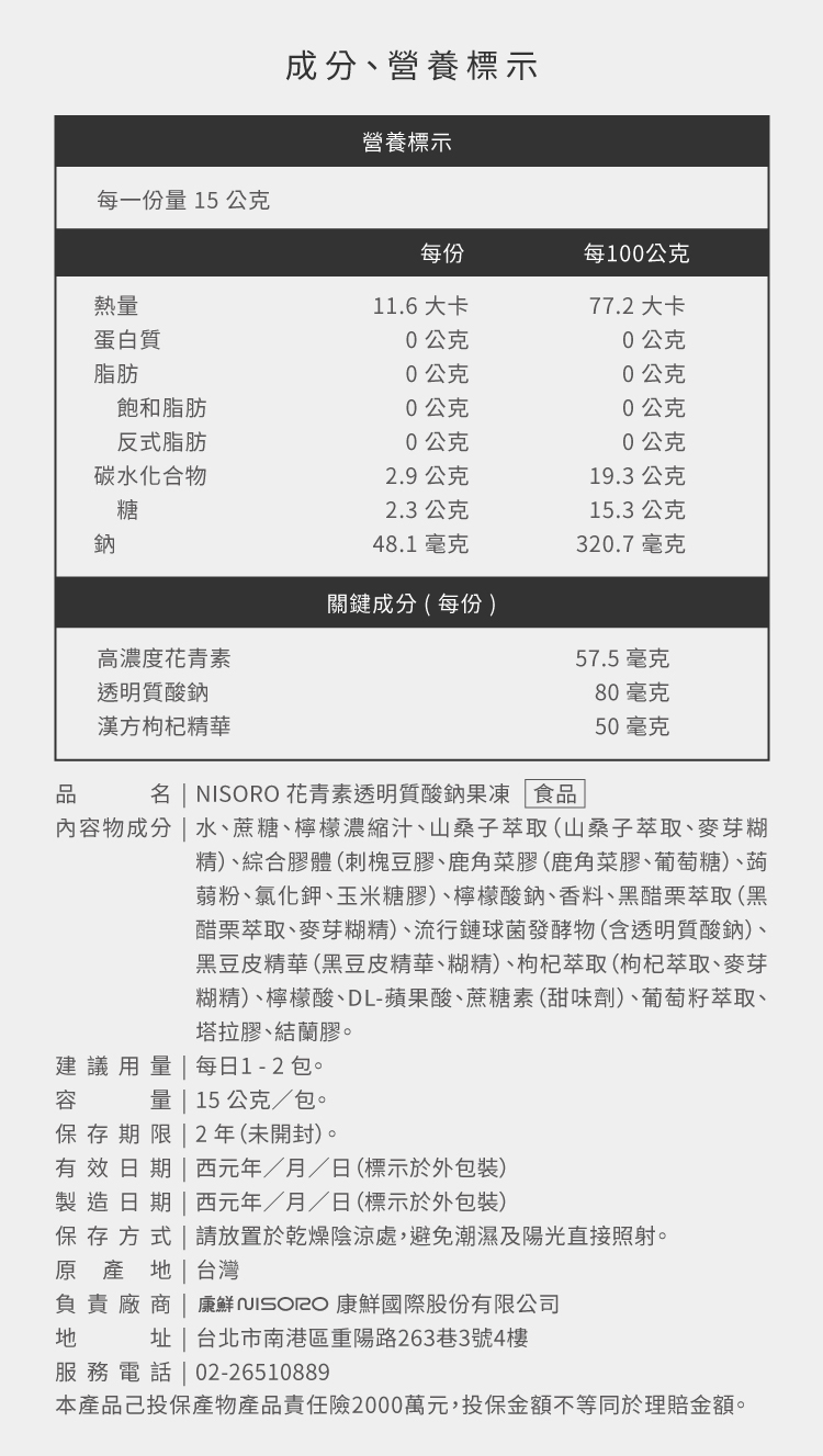 超高含量花青素每包高達57.5mg