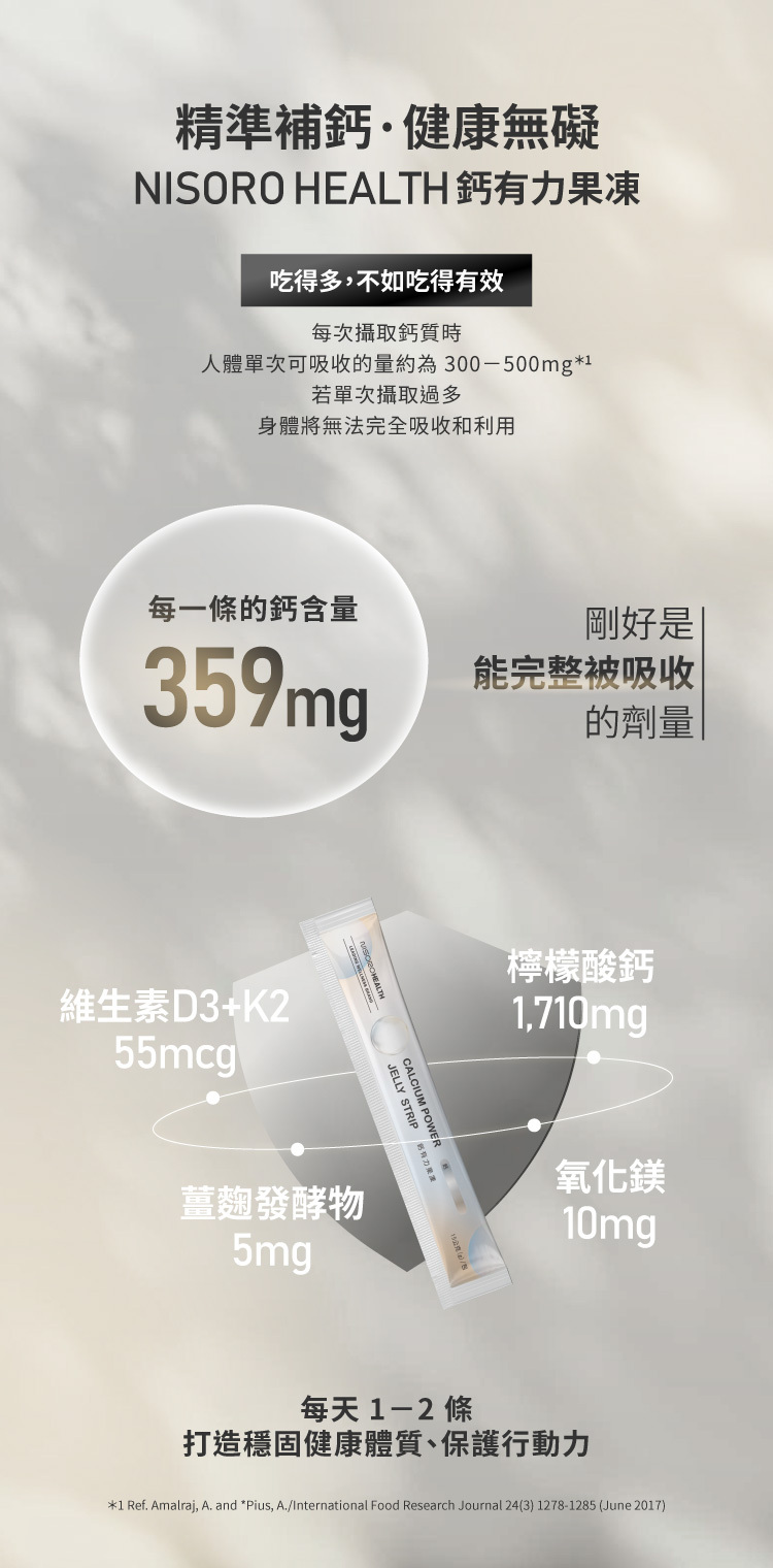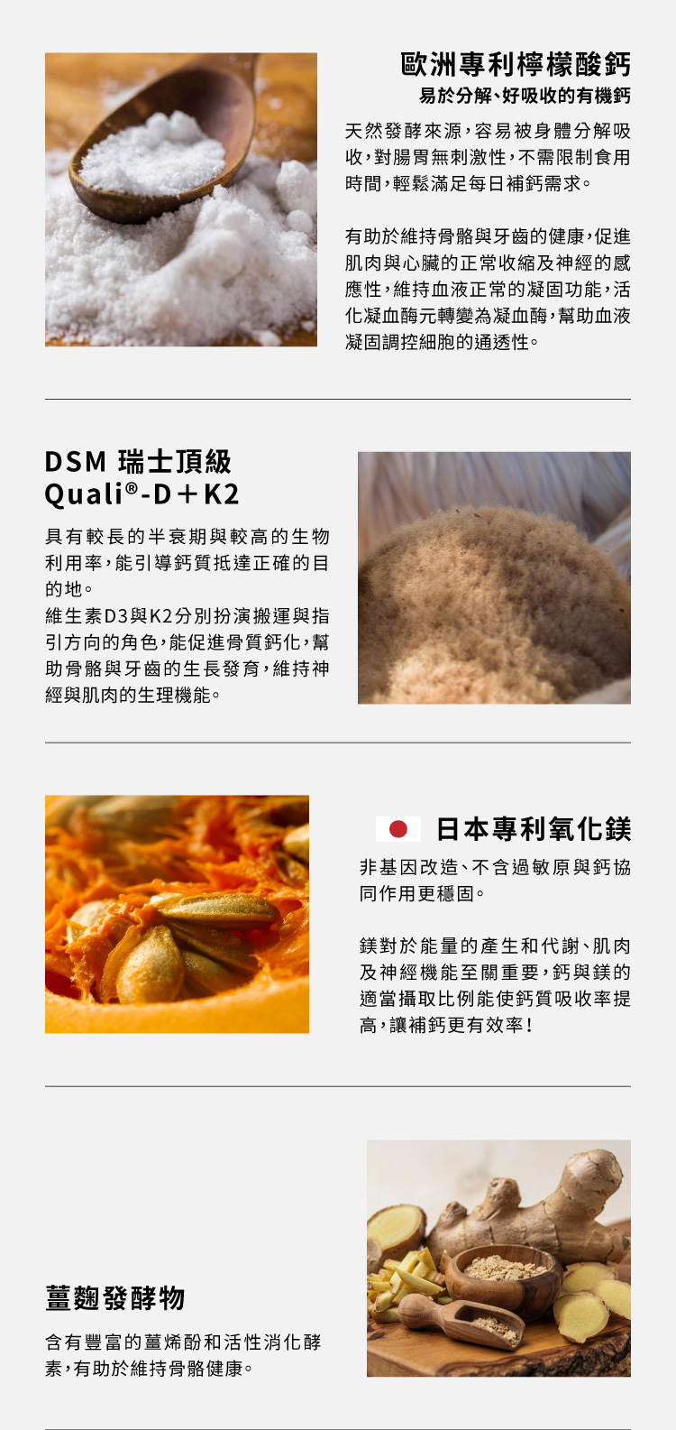 搭配維生素D3幫助鈣吸收、維生素K2協助營養有效運用