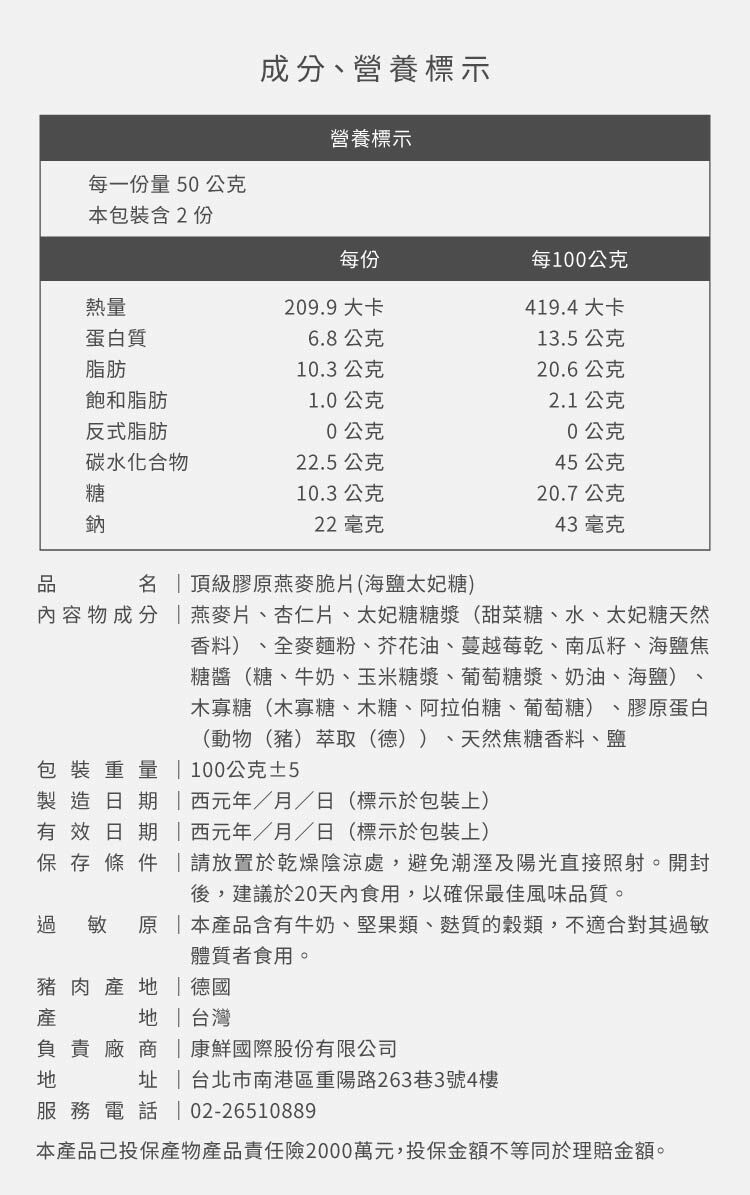 【任選10包組.巧克力/蜂蜜/太妃糖/黑糖烤茶】頂級膠原燕麥脆片(100g/包)⭐Serena專屬