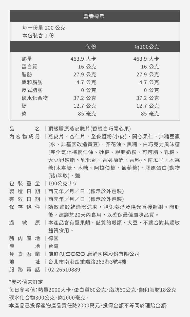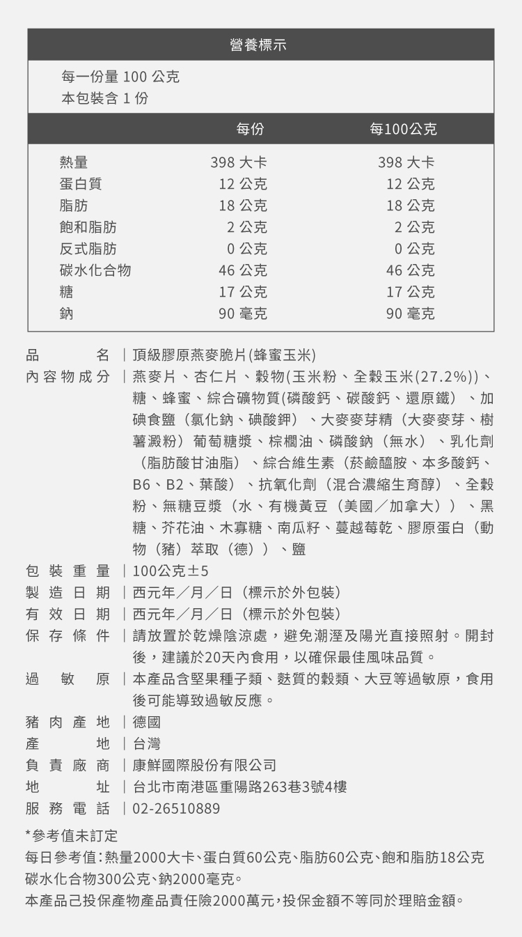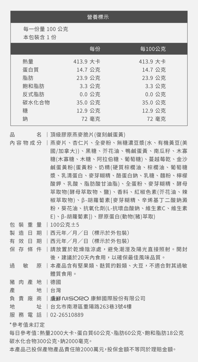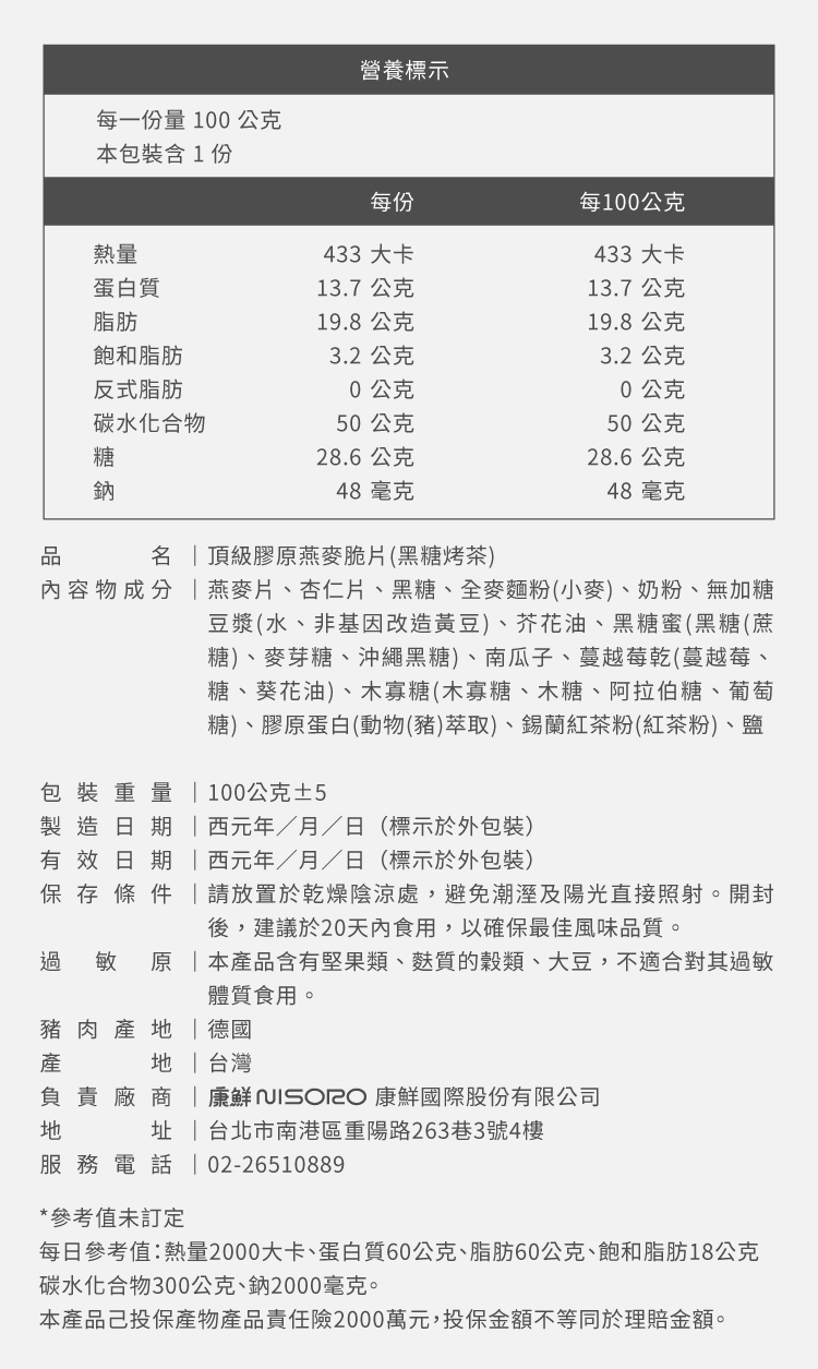 早餐 / 零食:頂級膠原燕麥脆片搭配牛奶、優格或直接食用,美味又營養