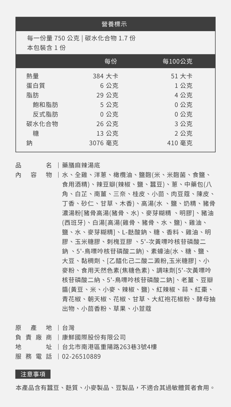 份量為1人份,加水稀釋可2人享用,口味小辣