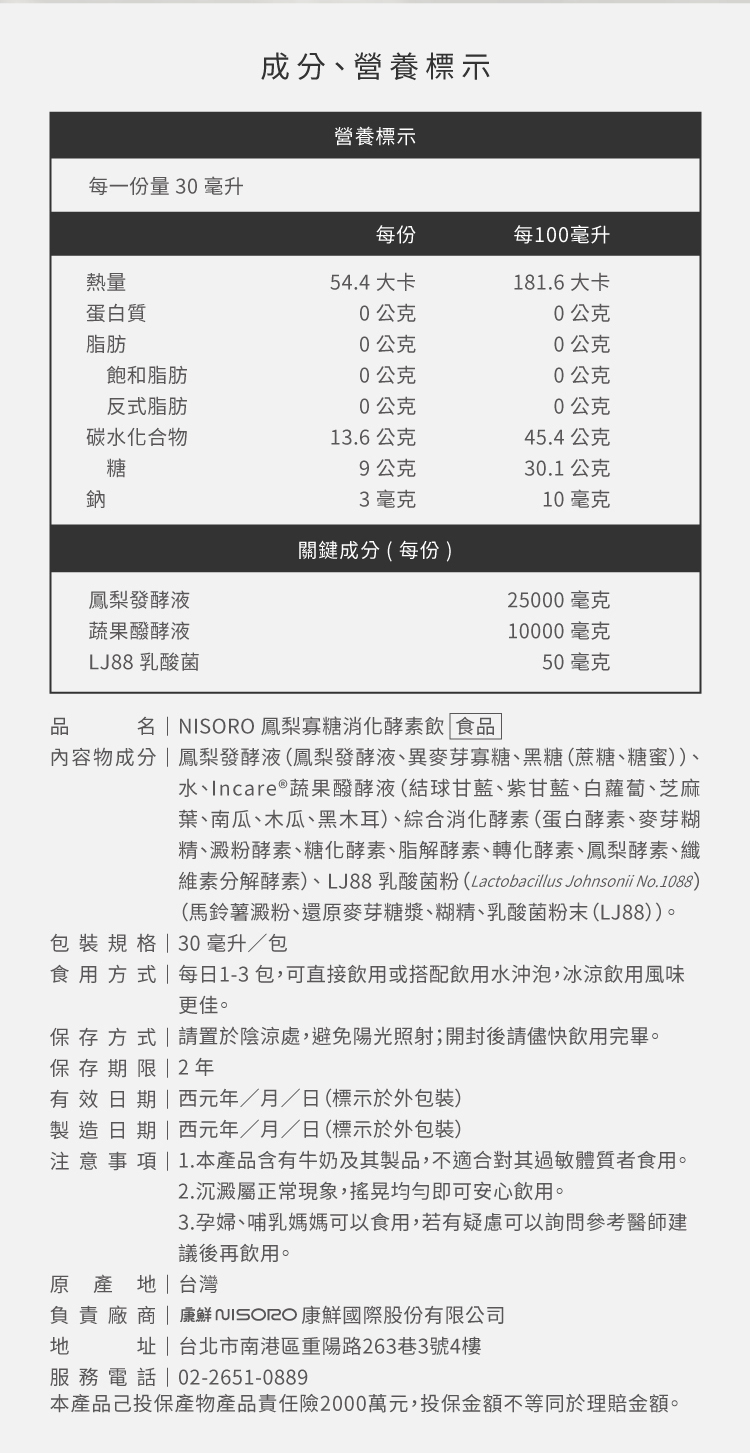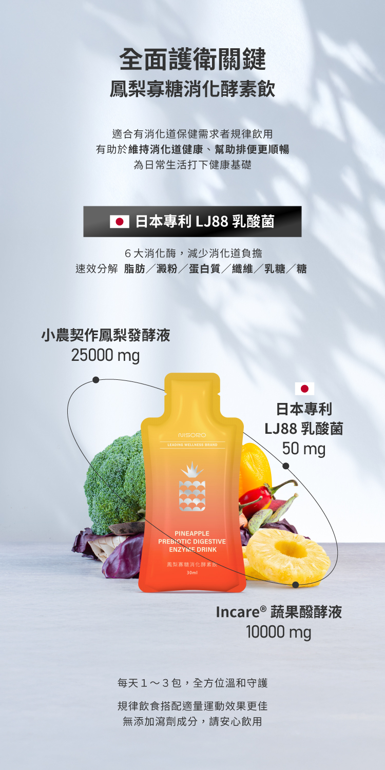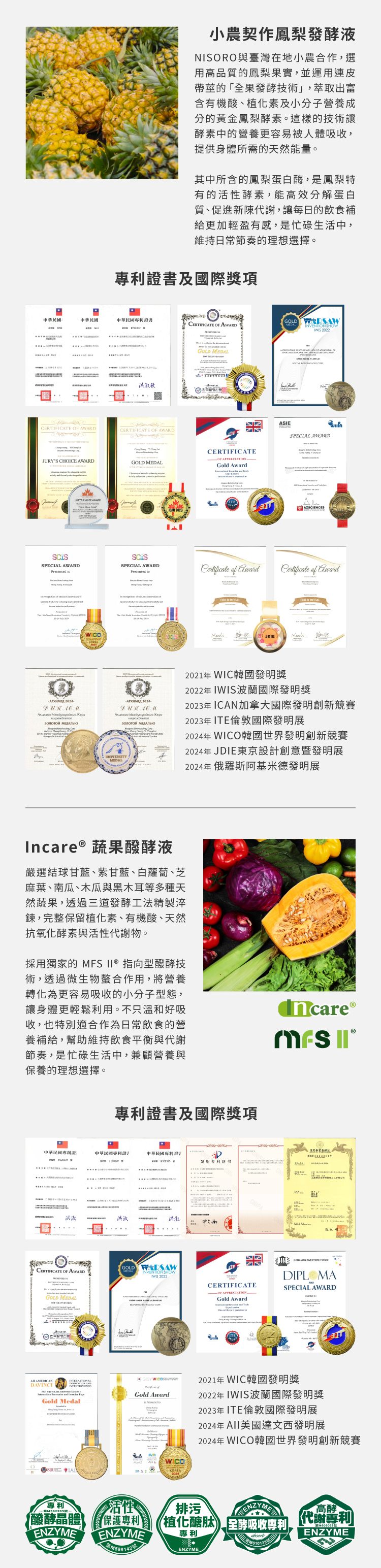 特別添加Incare® 蔬果醱酵液,嚴選多種天然蔬果