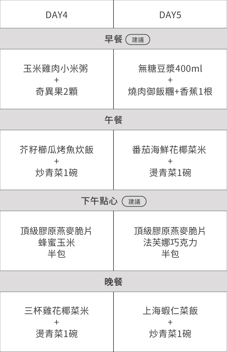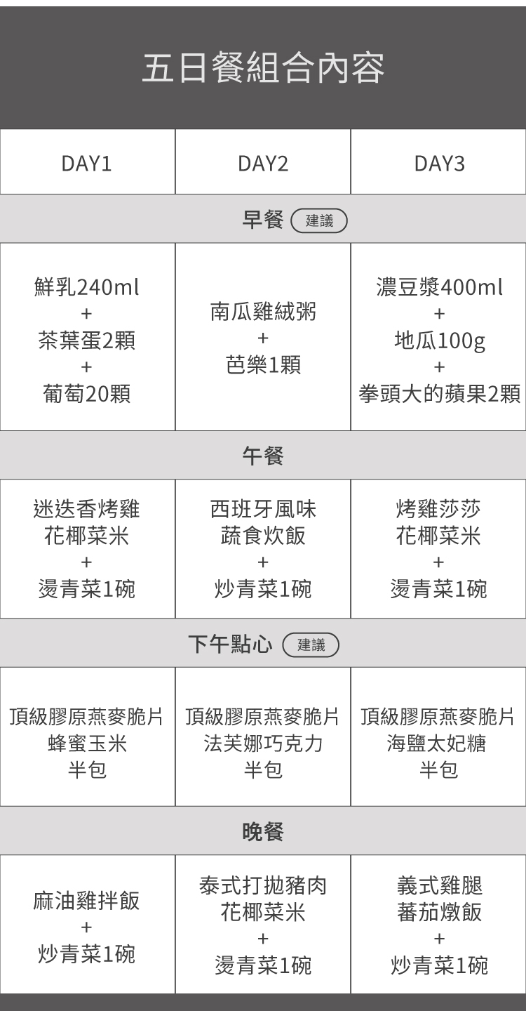 本菜單適合體重60-75公斤,想控管體態族群食用