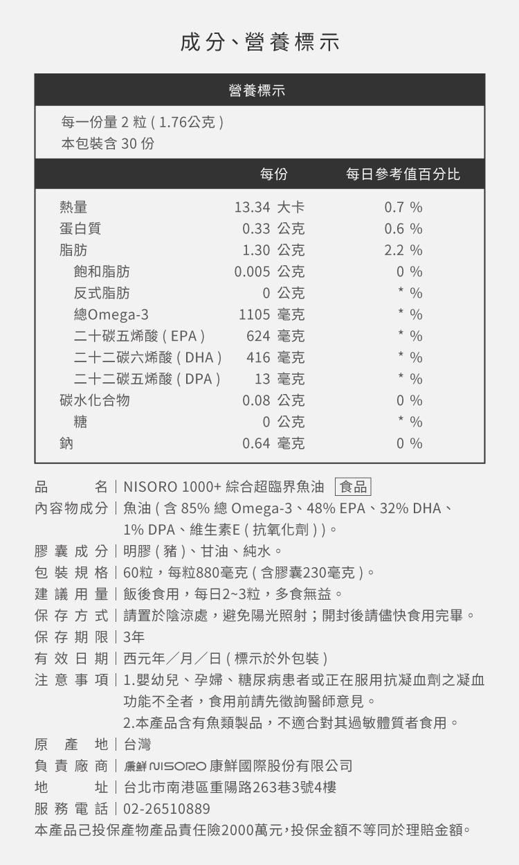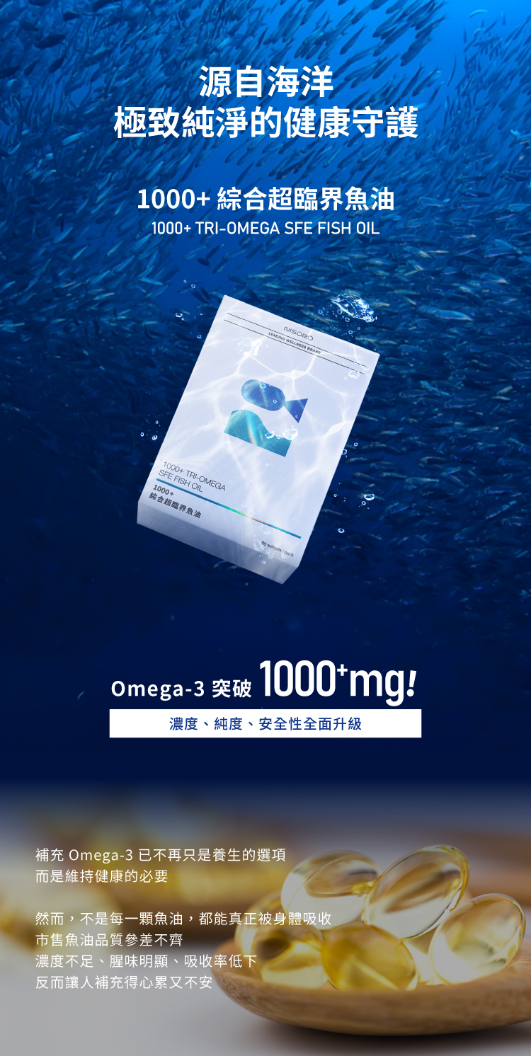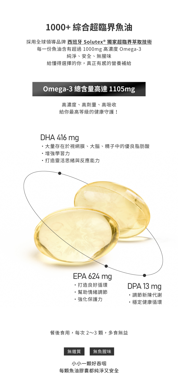 每日 1 份(2 顆),輕鬆補足 1000+ Omega-3