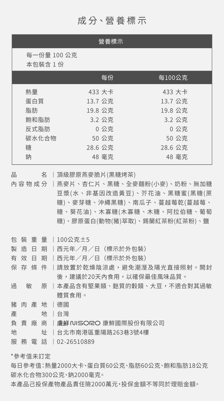 早餐 / 零食:頂級膠原燕麥脆片搭配牛奶、優格或直接食用,美味又營養