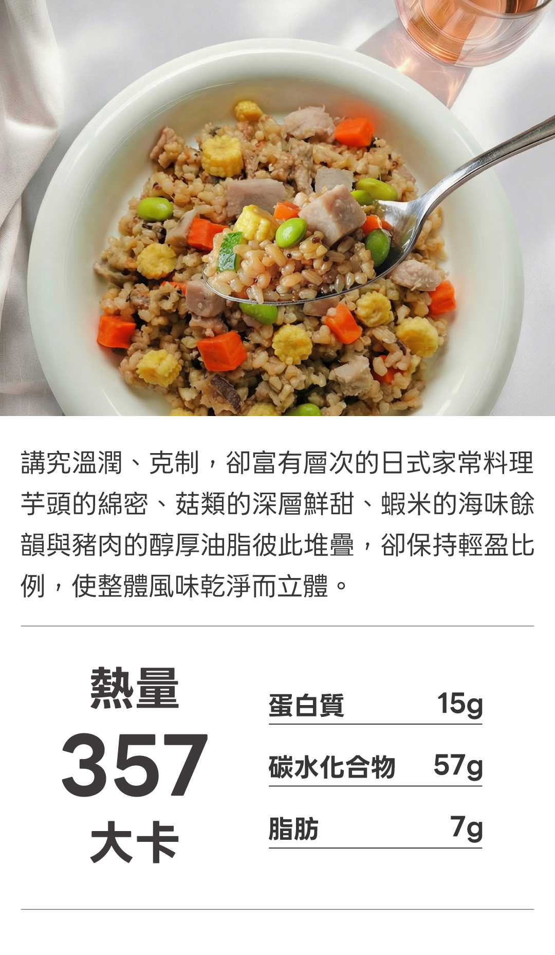 357卡|蛋白質15公克