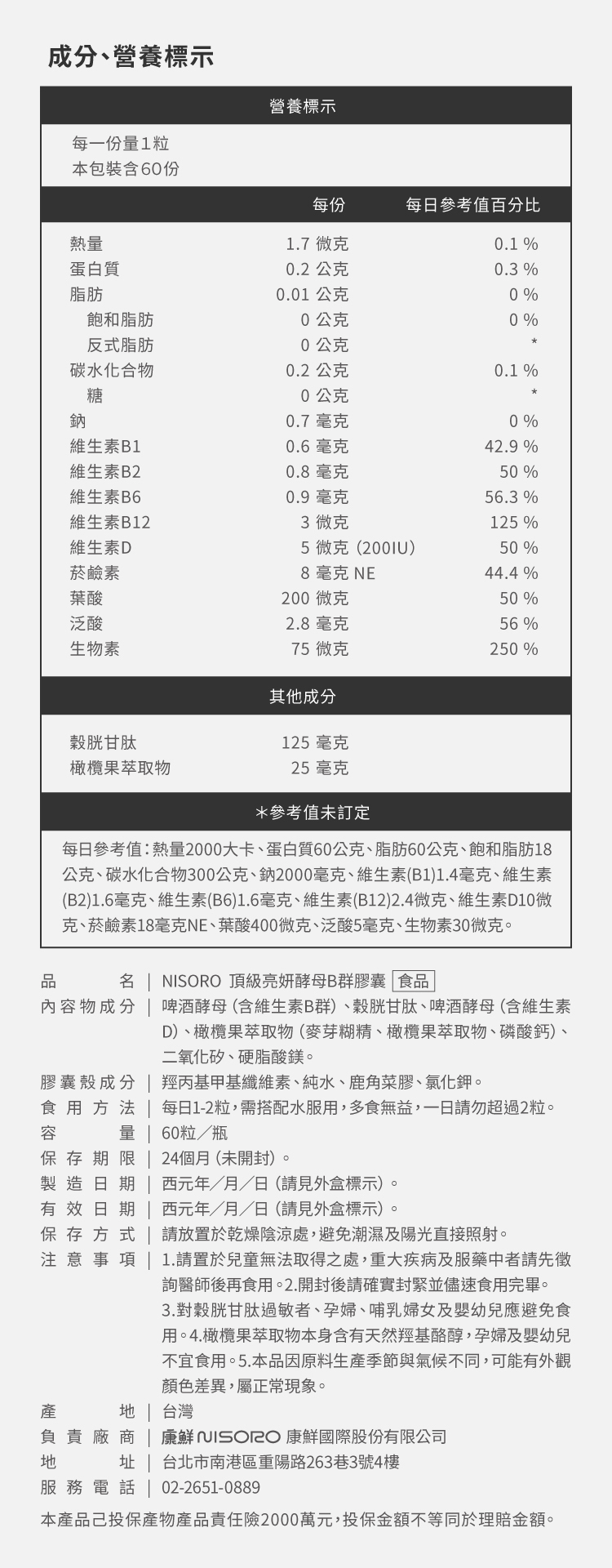 高含量維生素 B 群-支援能量產生,被譽為「精力發電機」,日日精神飽滿、活力滿分